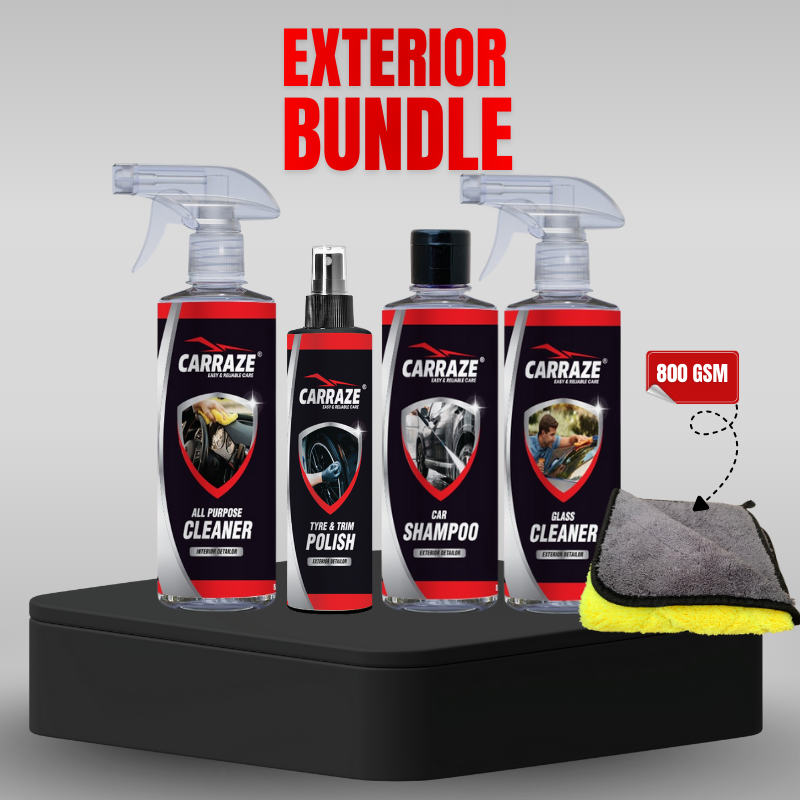 The Car Care 5-in-1 bundle from Carraze is a complete car cleaning solution for enthusiasts in Pakistan. It combines five premium products: APC, Car Shampoo, Glass Cleaner, Tyre & Trim Polish, and a Microfiber Cloth. As a result, you get everything required for professional detailing in one affordable package.