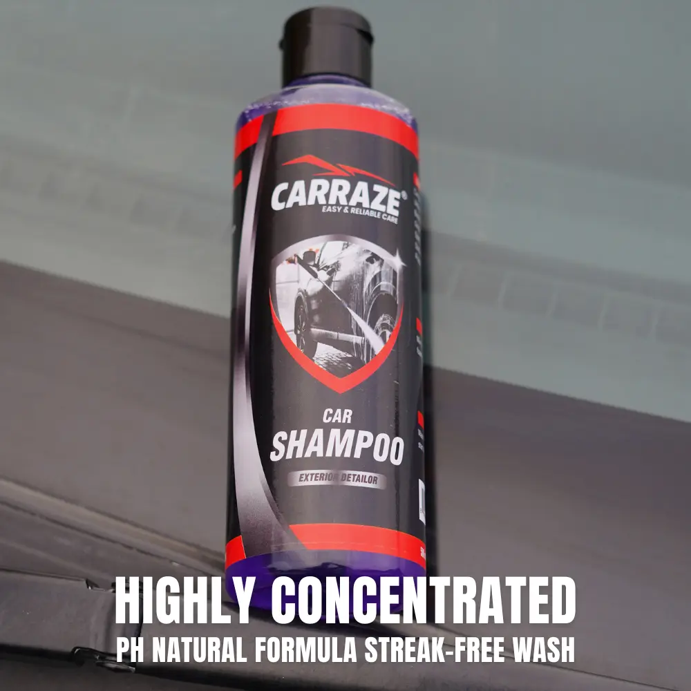 1. Start with the Car Shampoo for deep cleaning and dirt removal.
